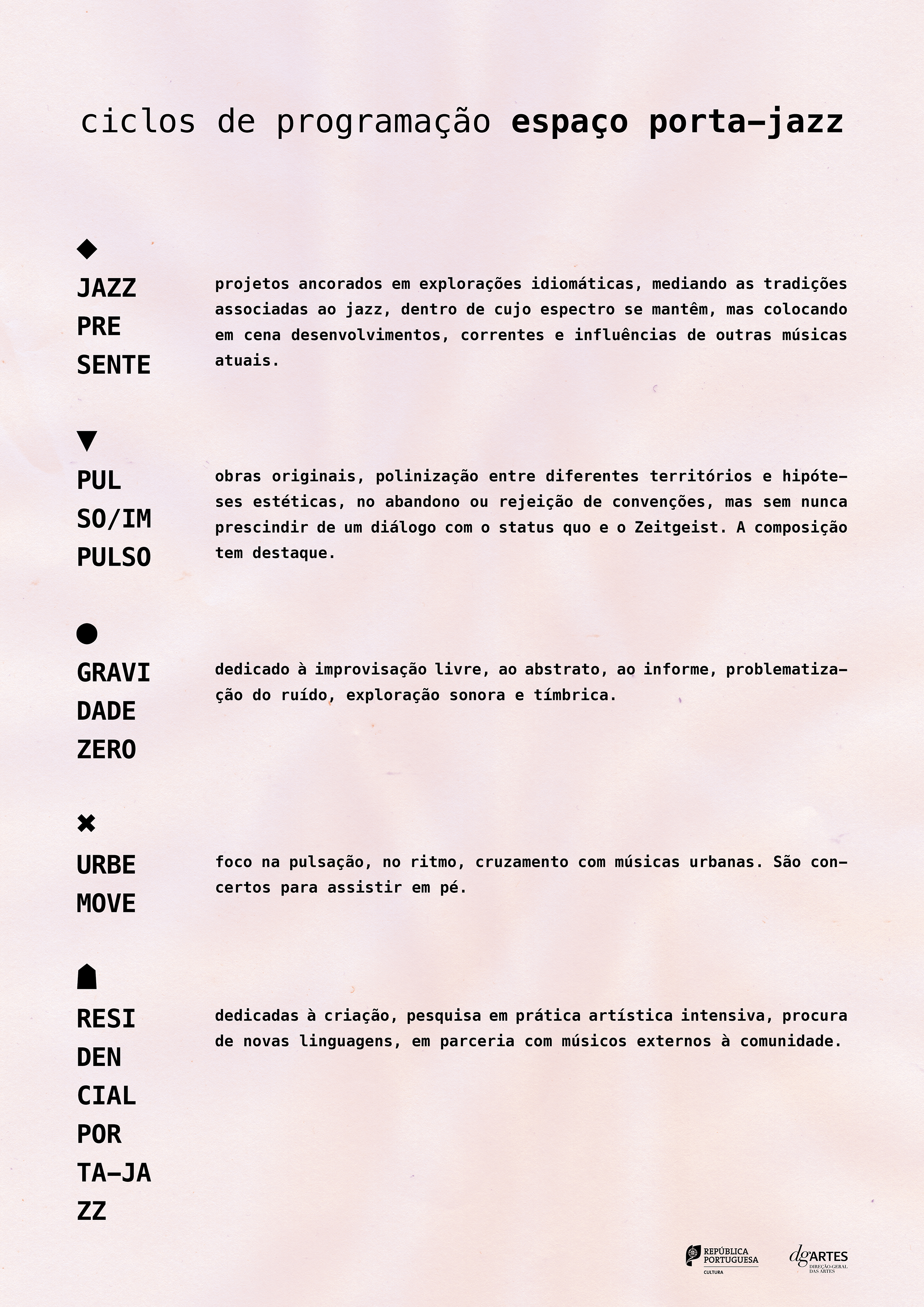 Com a construção de uma teia com 5 linhas orientadoras, cada qual refletindo uma lógica de programação própria, consegue-se espelhar melhor uma das ideias fundamentais dos valores que a Associação representa: a diversidade.